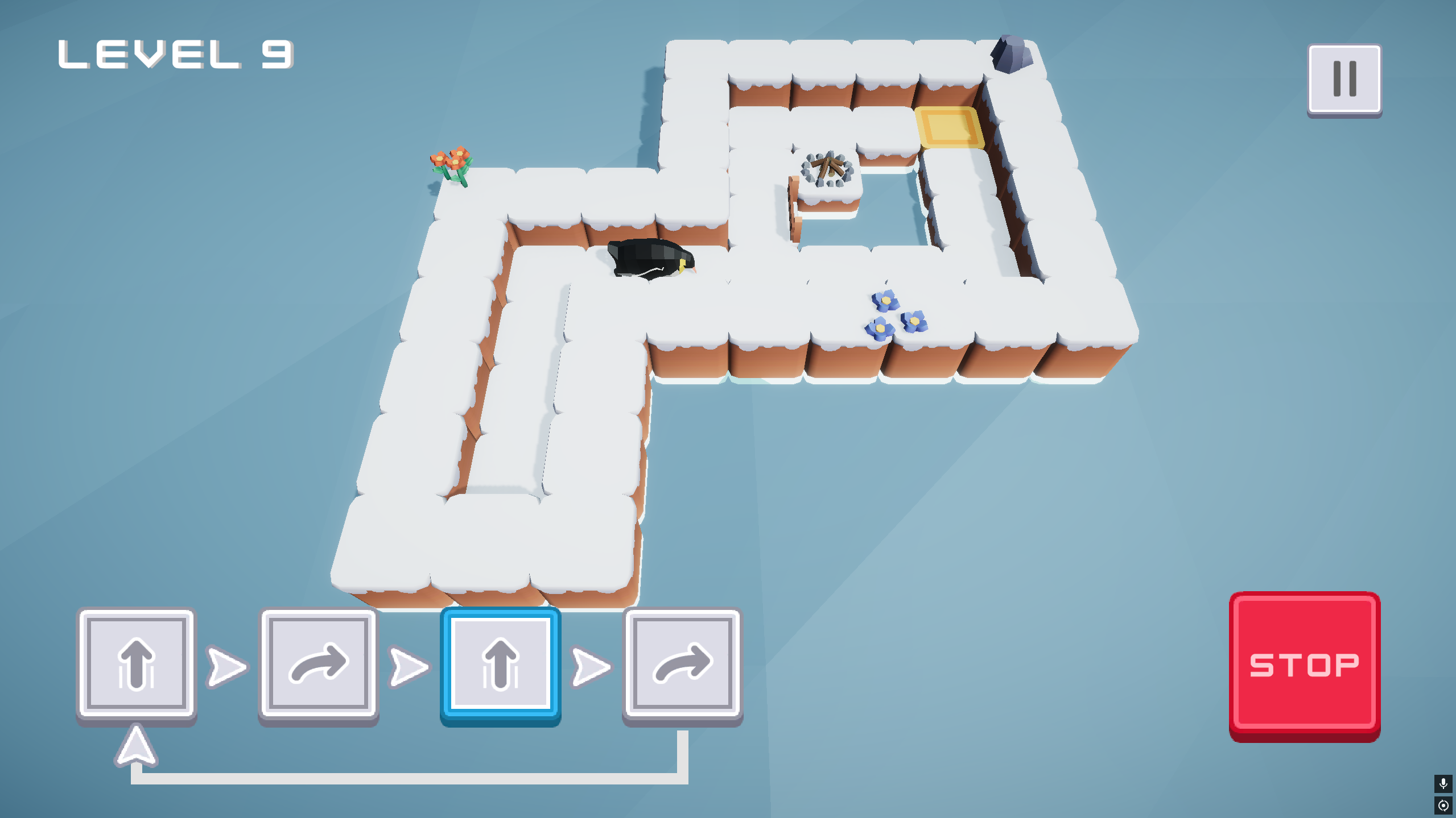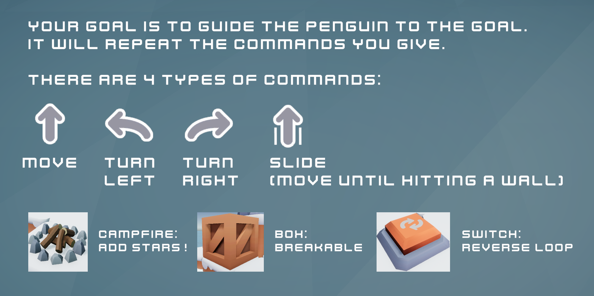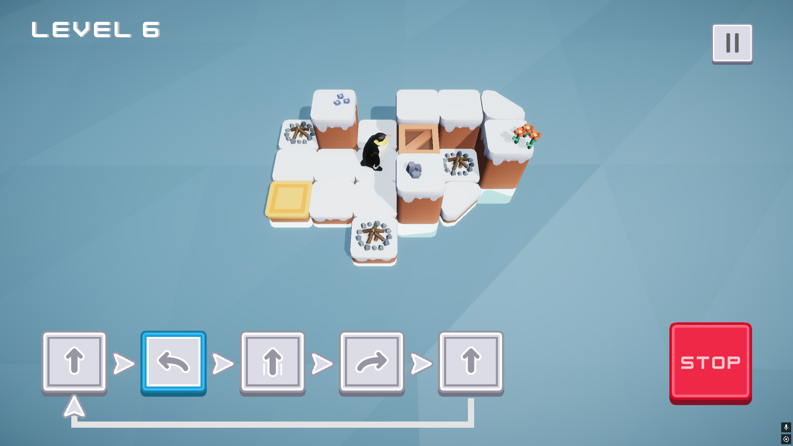 Help a penguin follow your instructions! It will repeat your commands in a loop to solve puzzles~